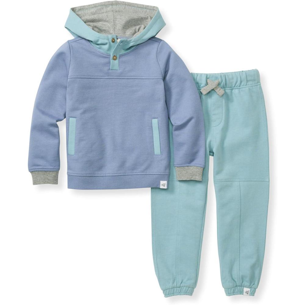 Burt’s Bees Baby baby-boys Hoodie and Pant Set, Top & Bottom Outfit Bundle, 100% Organic Cotton(Rain Colorblocked)
