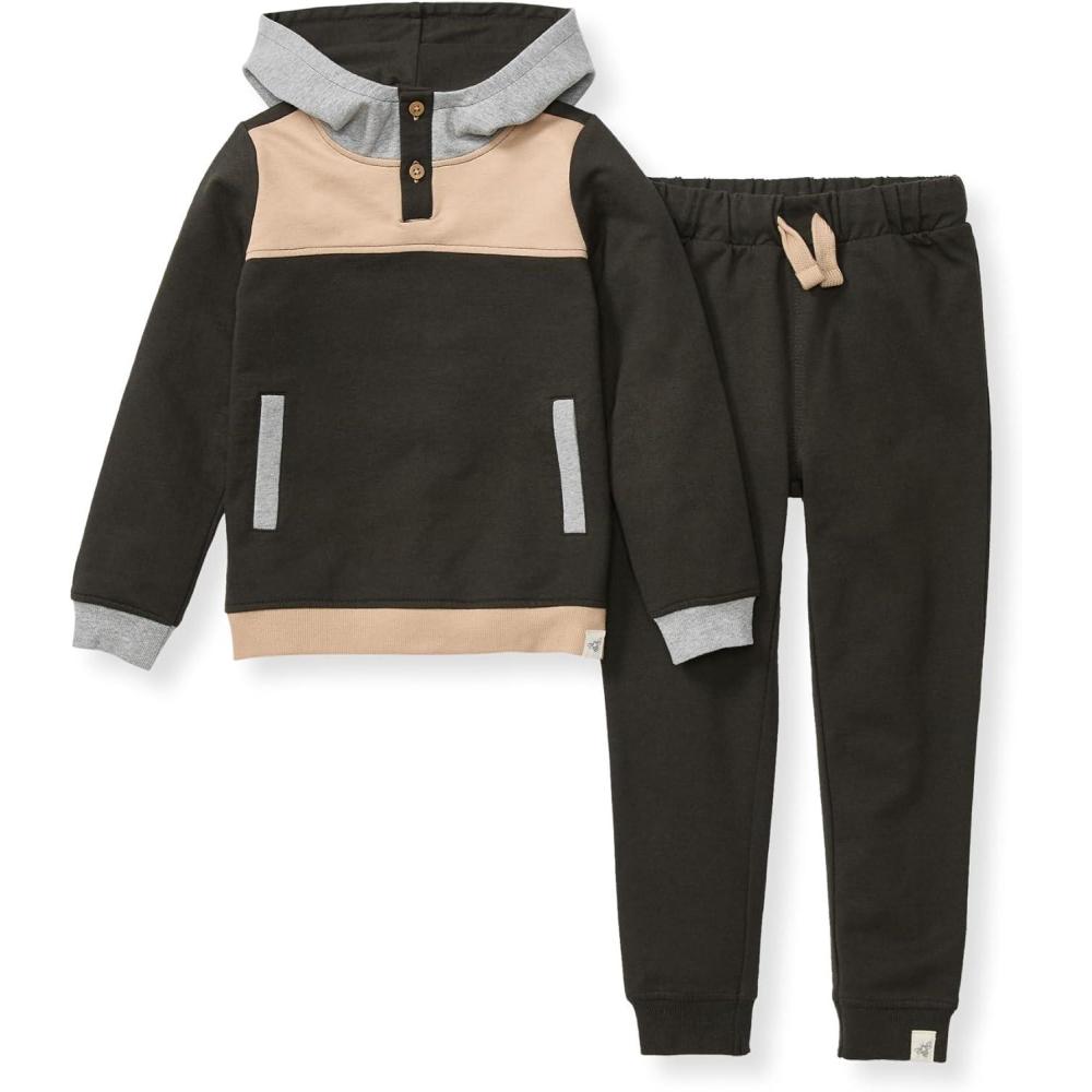 Burt’s Bees Baby baby-boys Hoodie and Pant Set, Top & Bottom Outfit Bundle, 100% Organic Cotton(Shadow Colorblocked)