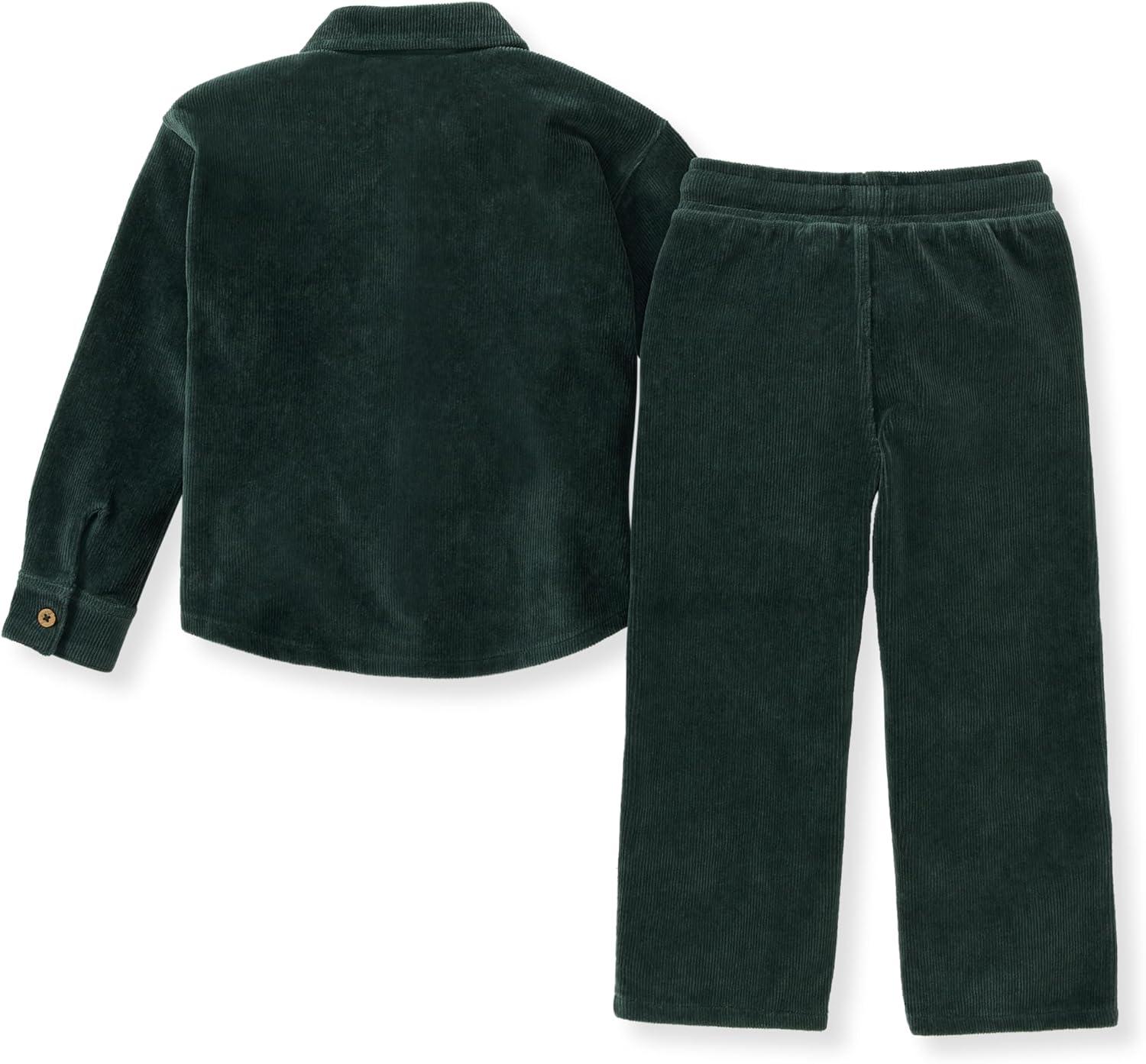 Burt's Bees Baby baby-boys Shirt and Pant Set, Long Sleeve Top & Bottom Outfit Bundle, 100% Organic Cotton(Green Corduroy)