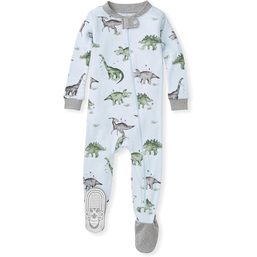 imageBurts Bees Baby babyboys Sleeper Pjs 100 Organic Cotton Onepiece Footie Zip Up Jumpsuit Snug Fit PajamasHappy Herbivores