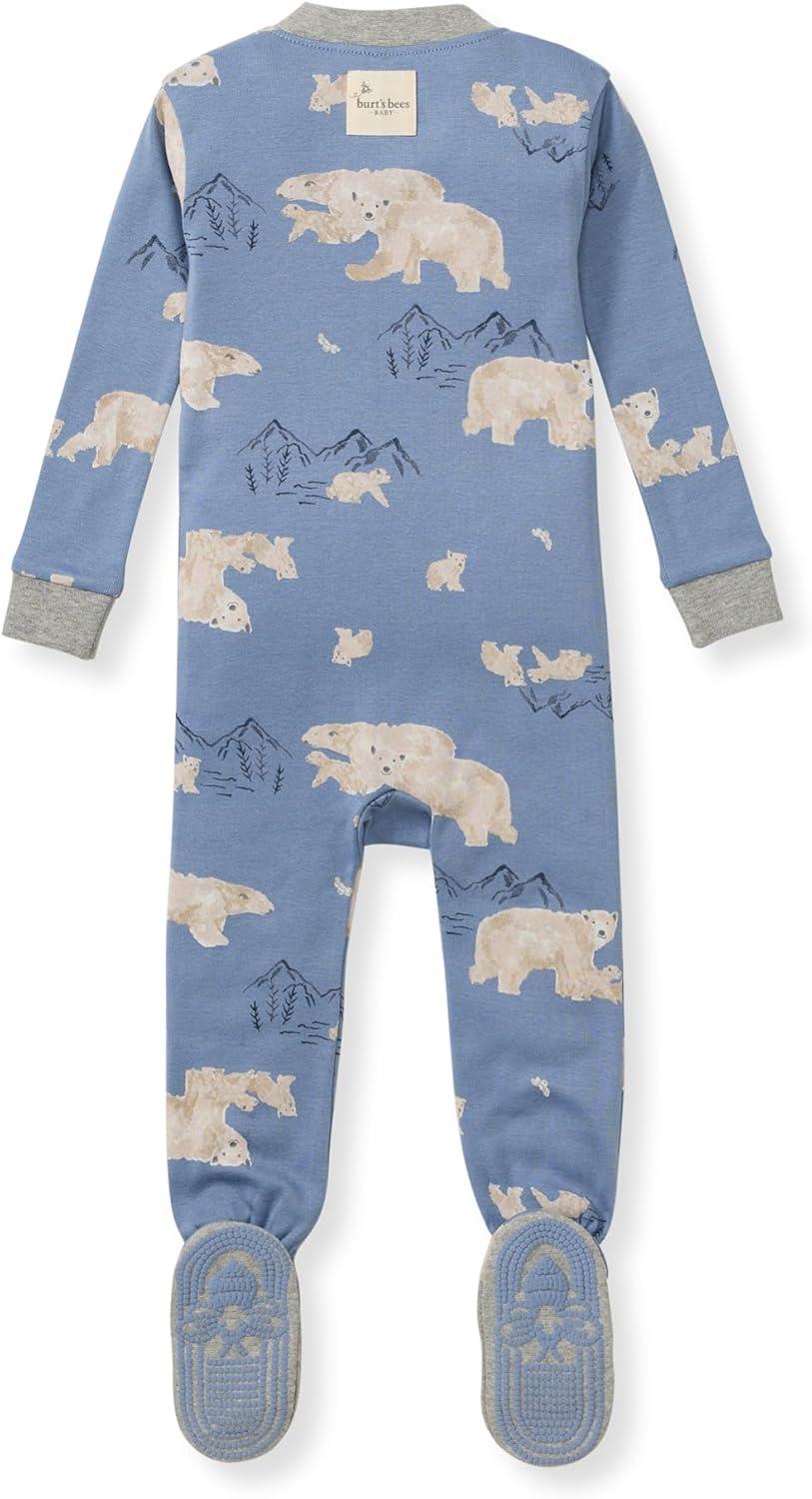 Burt's Bees Baby baby-boys Sleeper Pjs, 100% Organic Cotton, One-piece Footie, Zip Up Jumpsuit, Snug Fit Pajamas(Polar Mountain Blue)