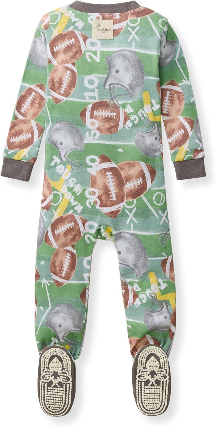 Burt's Bees Baby baby-boys Sleeper Pjs, 100% Organic Cotton, One-piece Footie, Zip Up Jumpsuit, Snug Fit Pajamas(Touchdown)