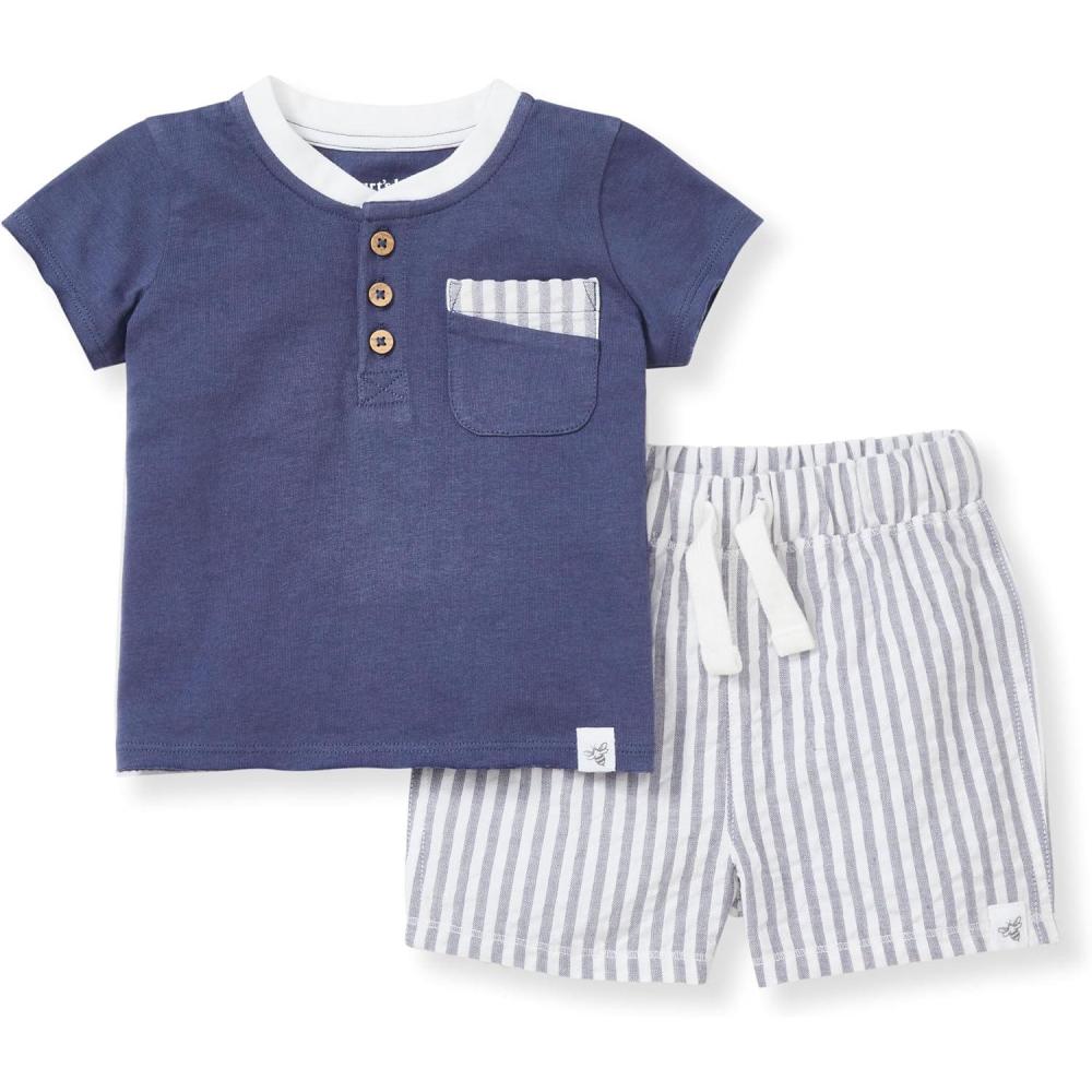 Burt’s Bees Baby Baby Boys Tee and Short Set(Henley Tee & Seersucker Shorts)