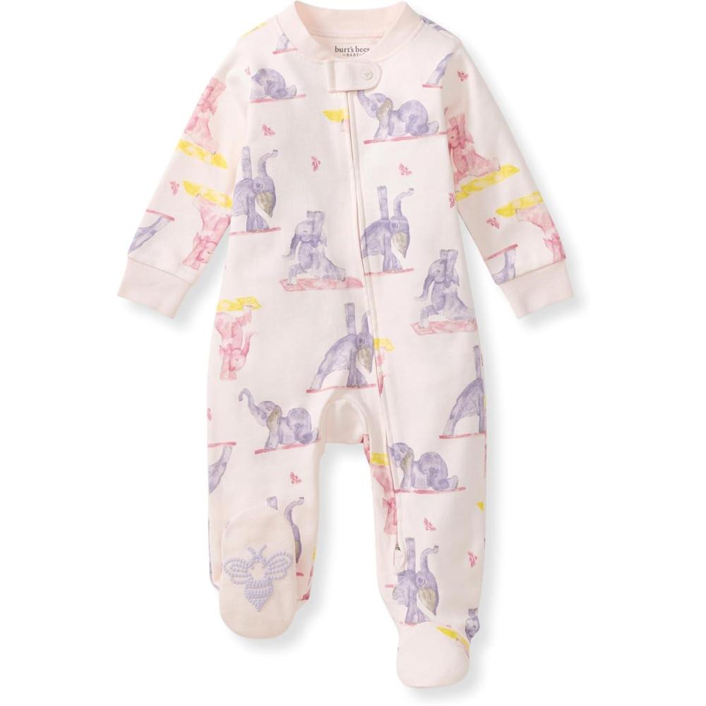 Burt's Bees Baby Baby Girls Pajamas Sleep and Play, Soft 100% Organic Cotton One-Piece PJ with Non-Slip Bee Grip Footies(Yogi Elephants)