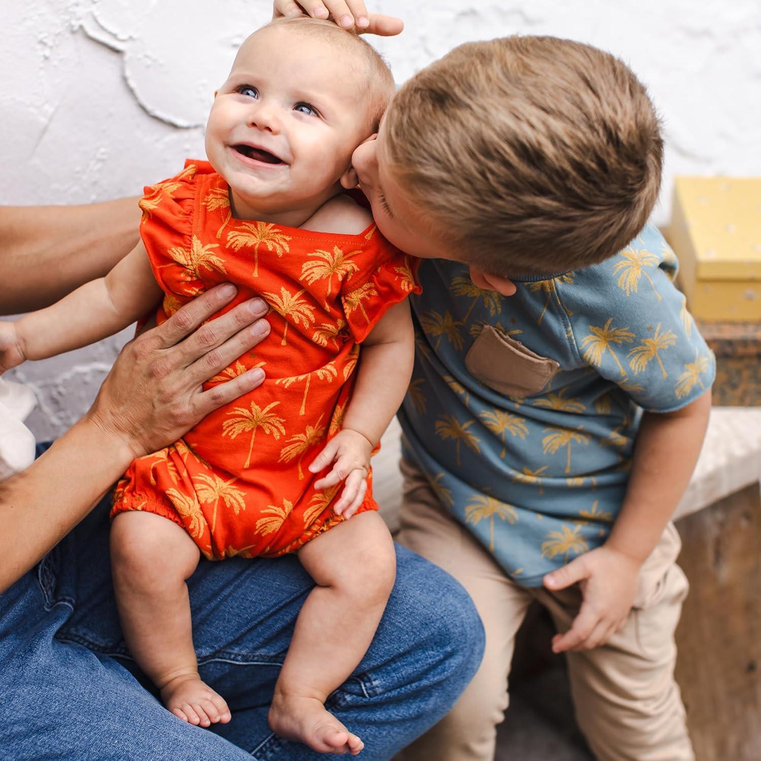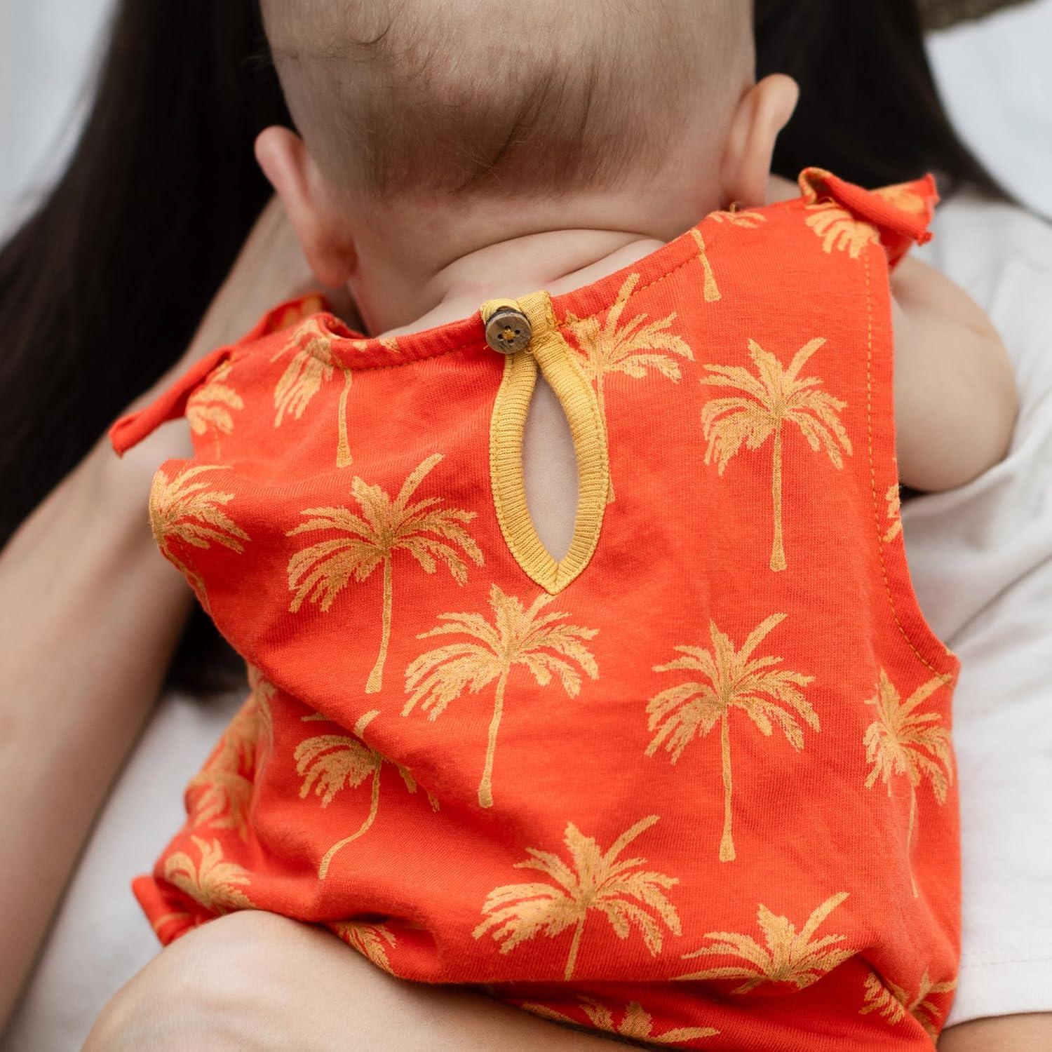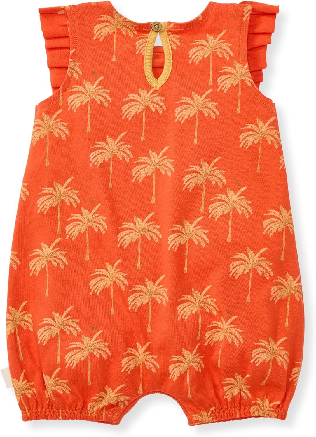Burt's Bees Baby Baby Girls Romper - 100% Organic Cotton, One-Piece Shortall Girl Outfit for Sizes Newborn to 24 Months(Golden Palms)