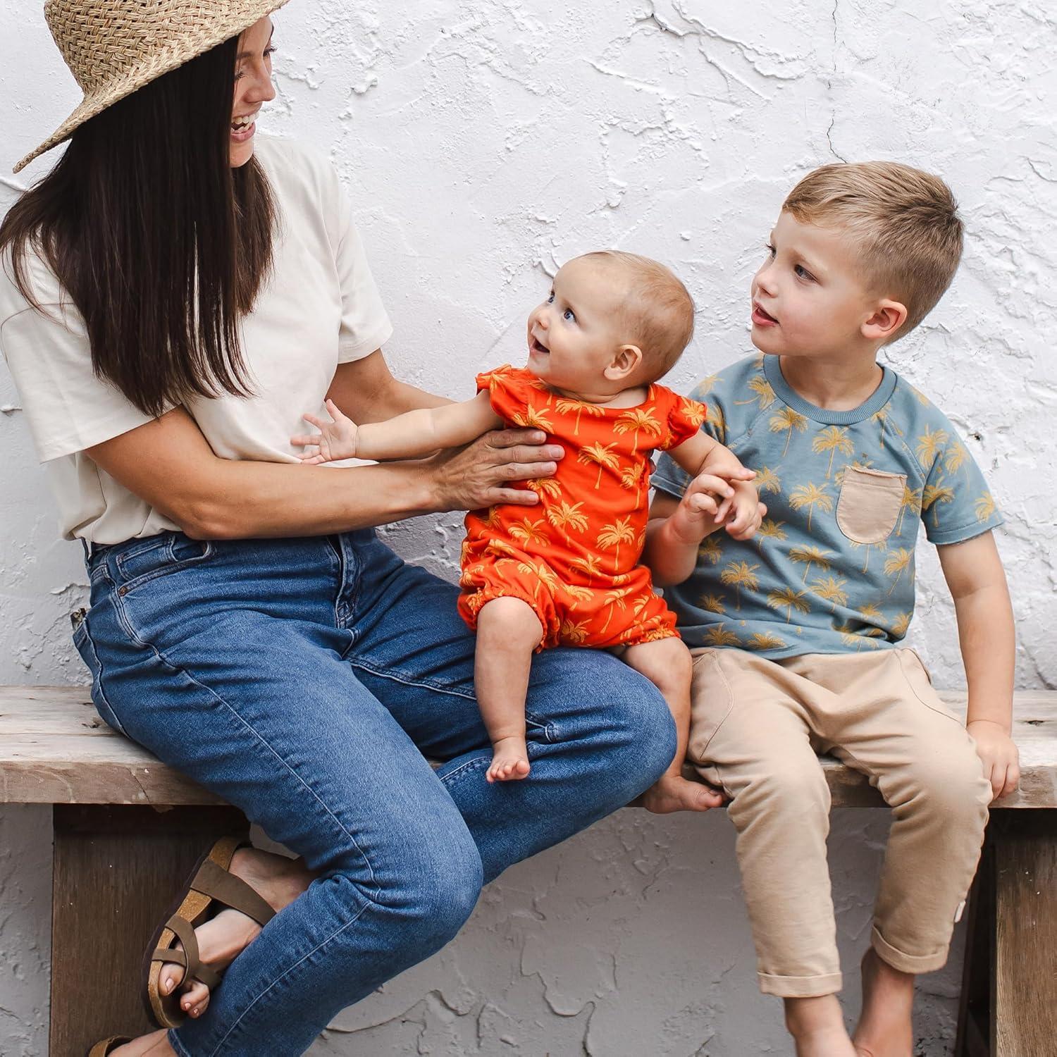 Burt’s Bees Baby Baby Girls Romper – 100% Organic Cotton, One-Piece Shortall Girl Outfit for Sizes Newborn to 24 Months(Golden Palms)