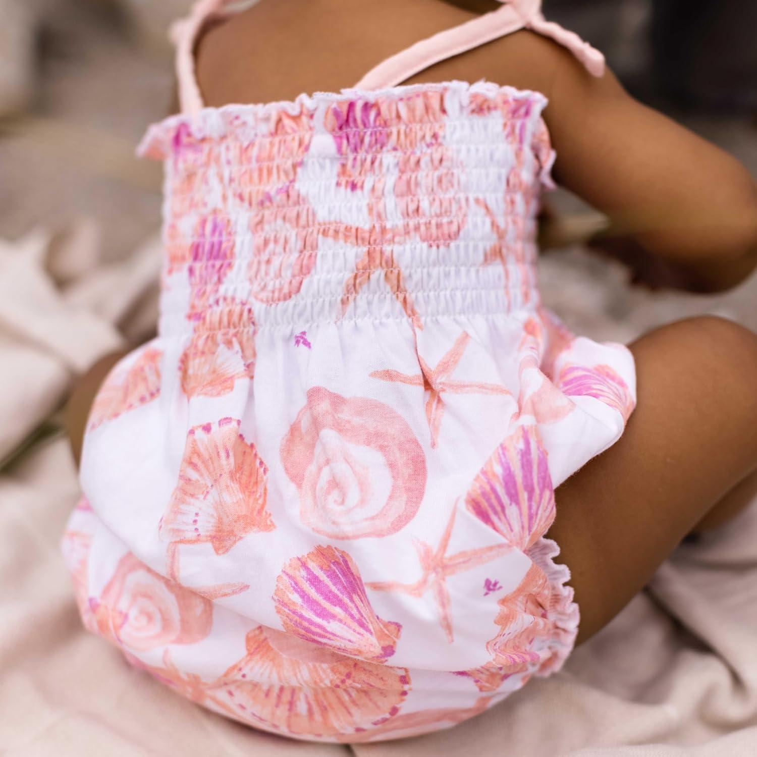 Burt's Bees Baby Baby Girls Romper - 100% Organic Cotton, One-Piece Shortall Girl Outfit for Sizes Newborn to 24 Months(Swirly Seashells)