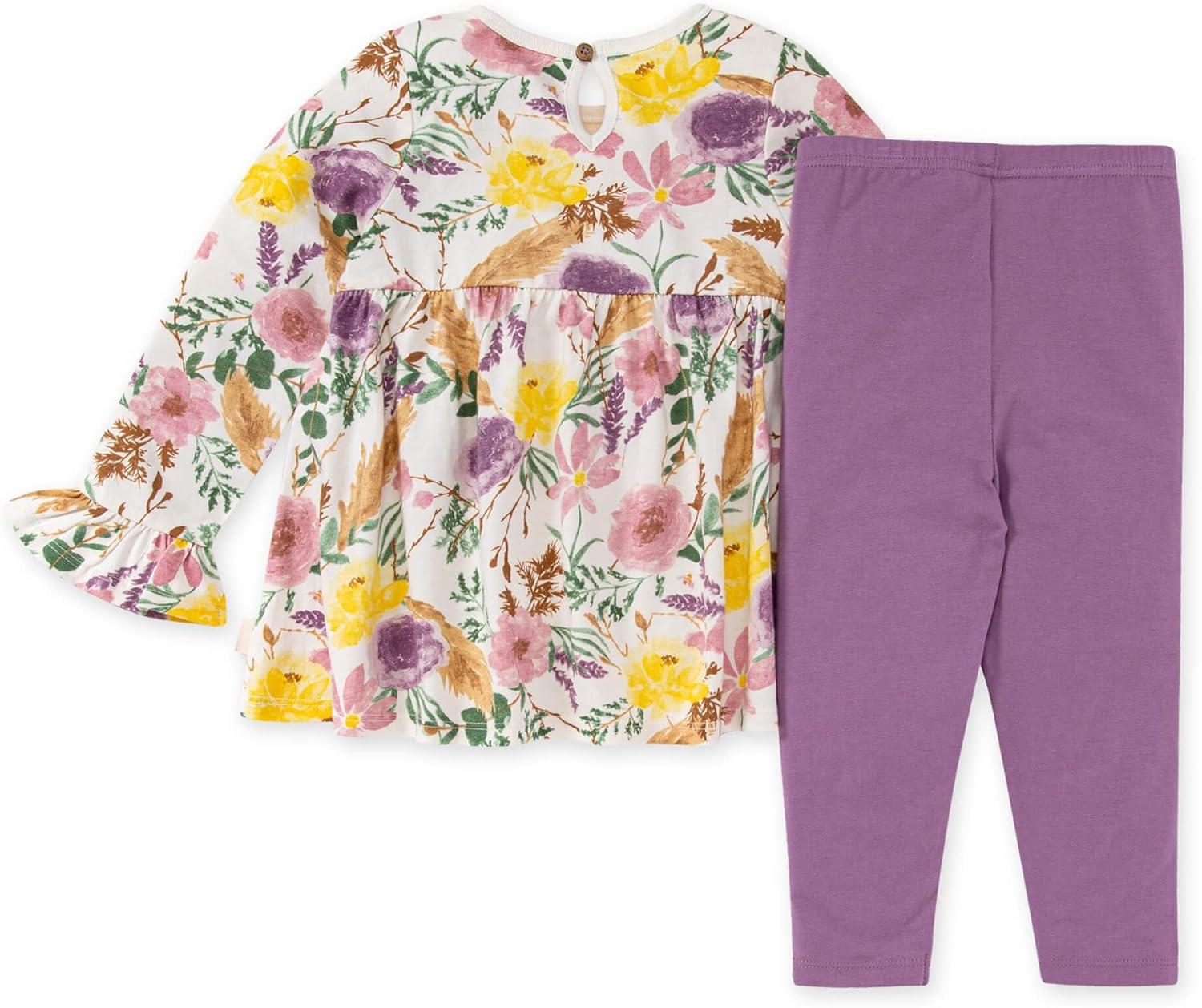 Burt's Bees Baby Baby Girls Top and Pant Set, Tunic and Leggings Bundle, 100% Organic Cotton(Rustic Floral)