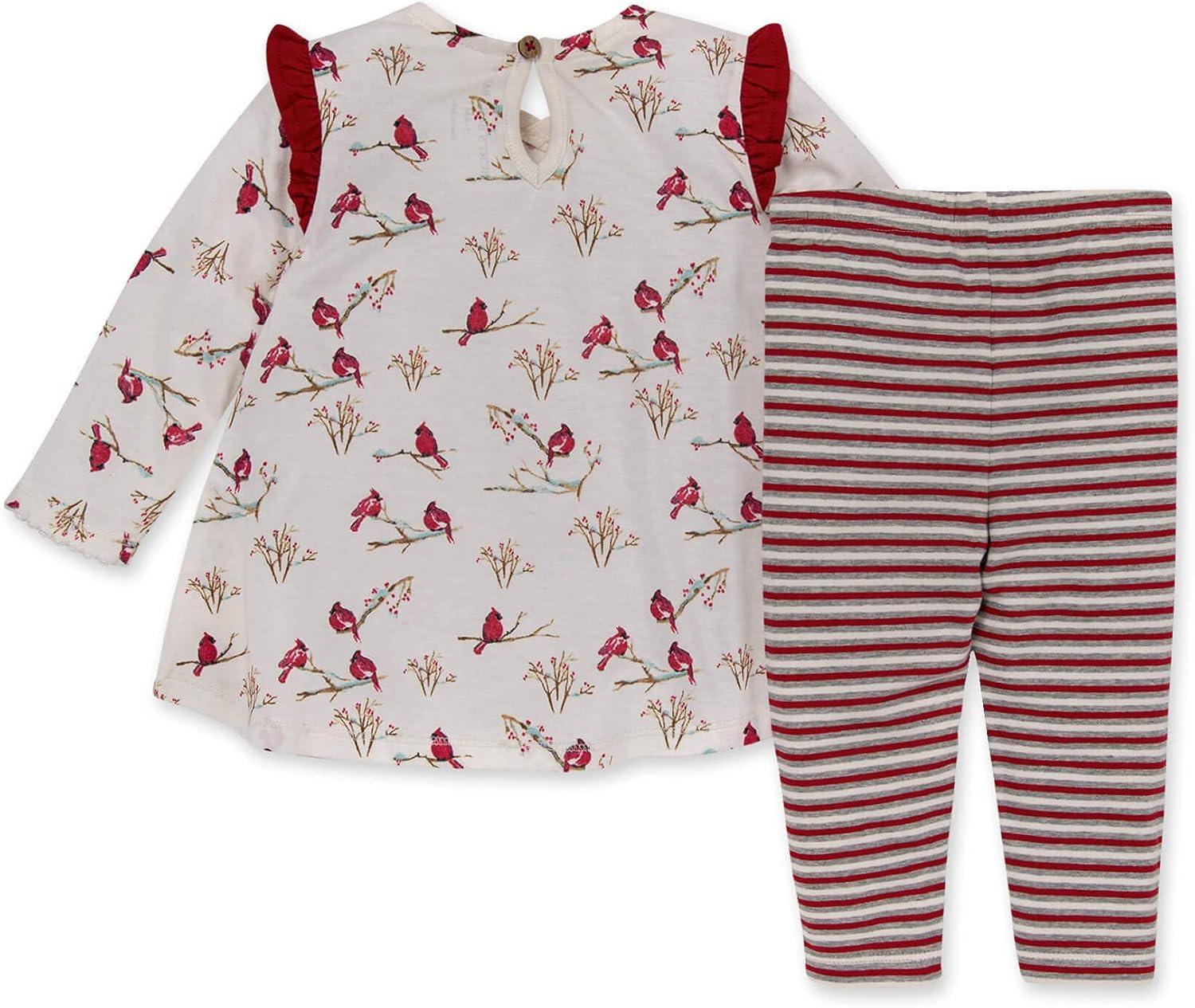 Burt's Bees Baby Baby Girls Top and Pant Set, Tunic and Leggings Bundle, 100% Organic Cotton(Snowy Songbirds)