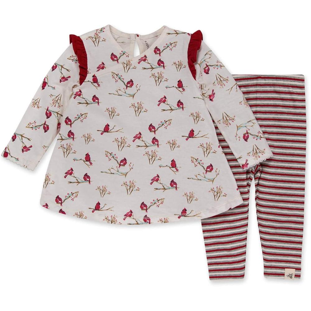 Burt’s Bees Baby Baby Girls Top and Pant Set, Tunic and Leggings Bundle, 100% Organic Cotton(Snowy Songbirds)