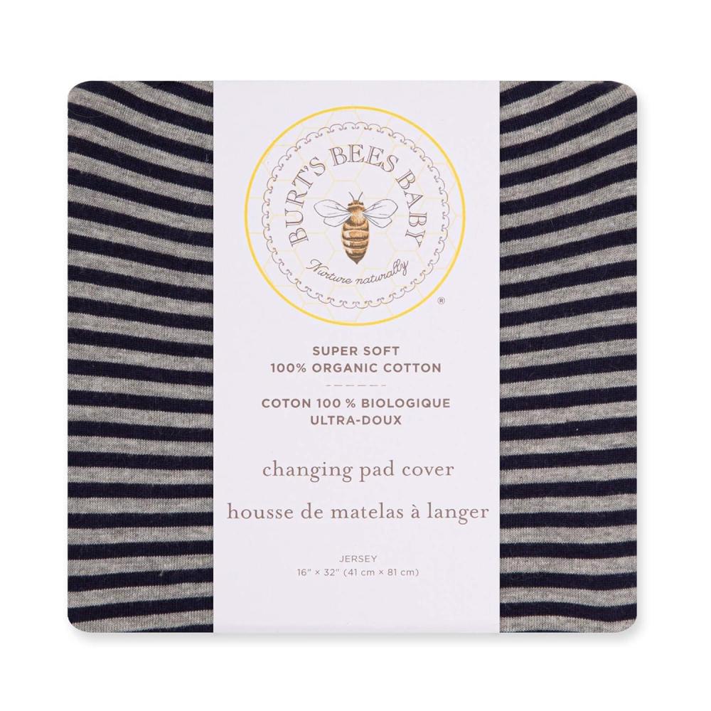 Burt's Bees Baby - Changing Pad Cover, 100% Organic Jersey Cotton Changing Pad Liner for Standard 16 x 32 Inch Changing Mats(Navy Stripe)