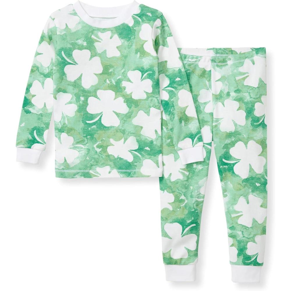 Burt's Bees Baby Girls' Pajamas, 2-Piece Long Sleeve Tee and Pants Organic Cotton PJ Set(Artsy Clover)