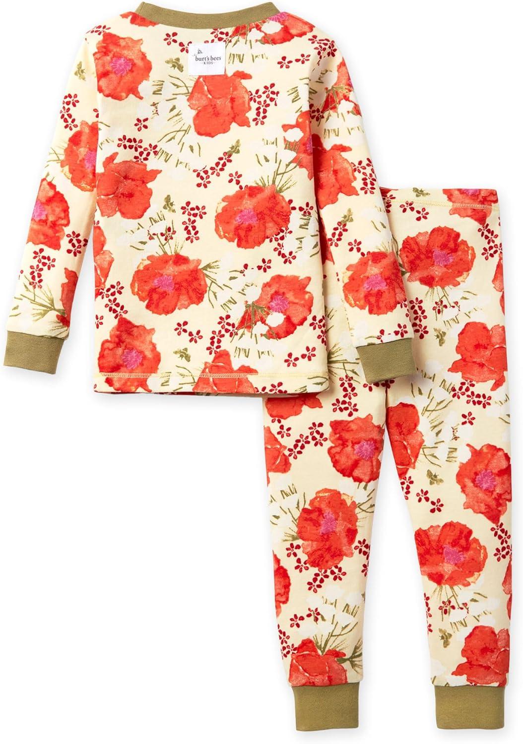 Burt's Bees Baby Girls' Pajamas, 2-Piece Long Sleeve Tee and Pants Organic Cotton PJ Set(Blooming Fields)