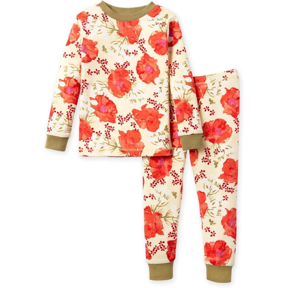 Burt’s Bees Baby Girls’ Pajamas, 2-Piece Long Sleeve Tee and Pants Organic Cotton PJ Set(Blooming Fields)