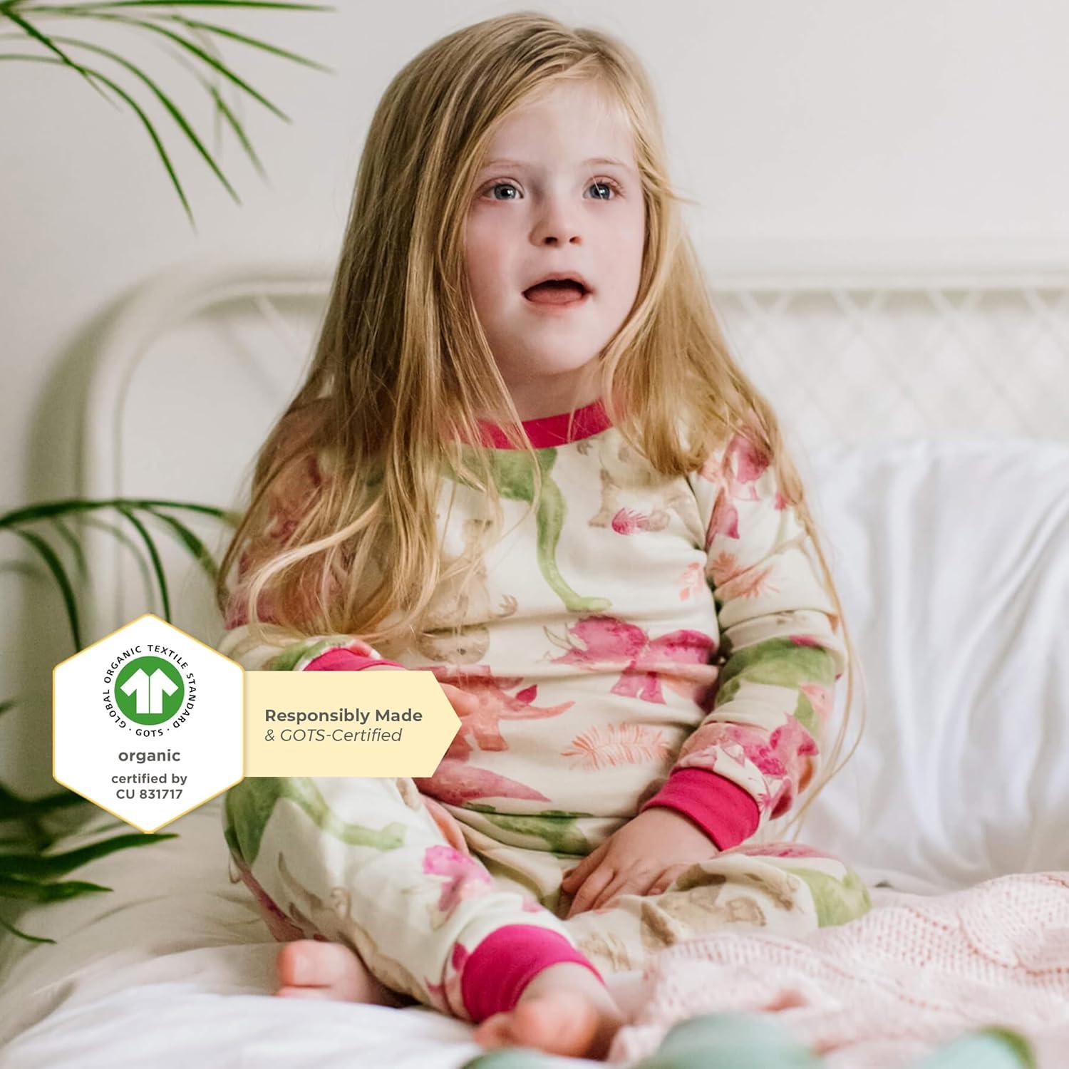 Burt’s Bees Baby Girls’ Pajamas, 2-Piece Long Sleeve Tee and Pants Organic Cotton PJ Set(Mega Dino Friends)