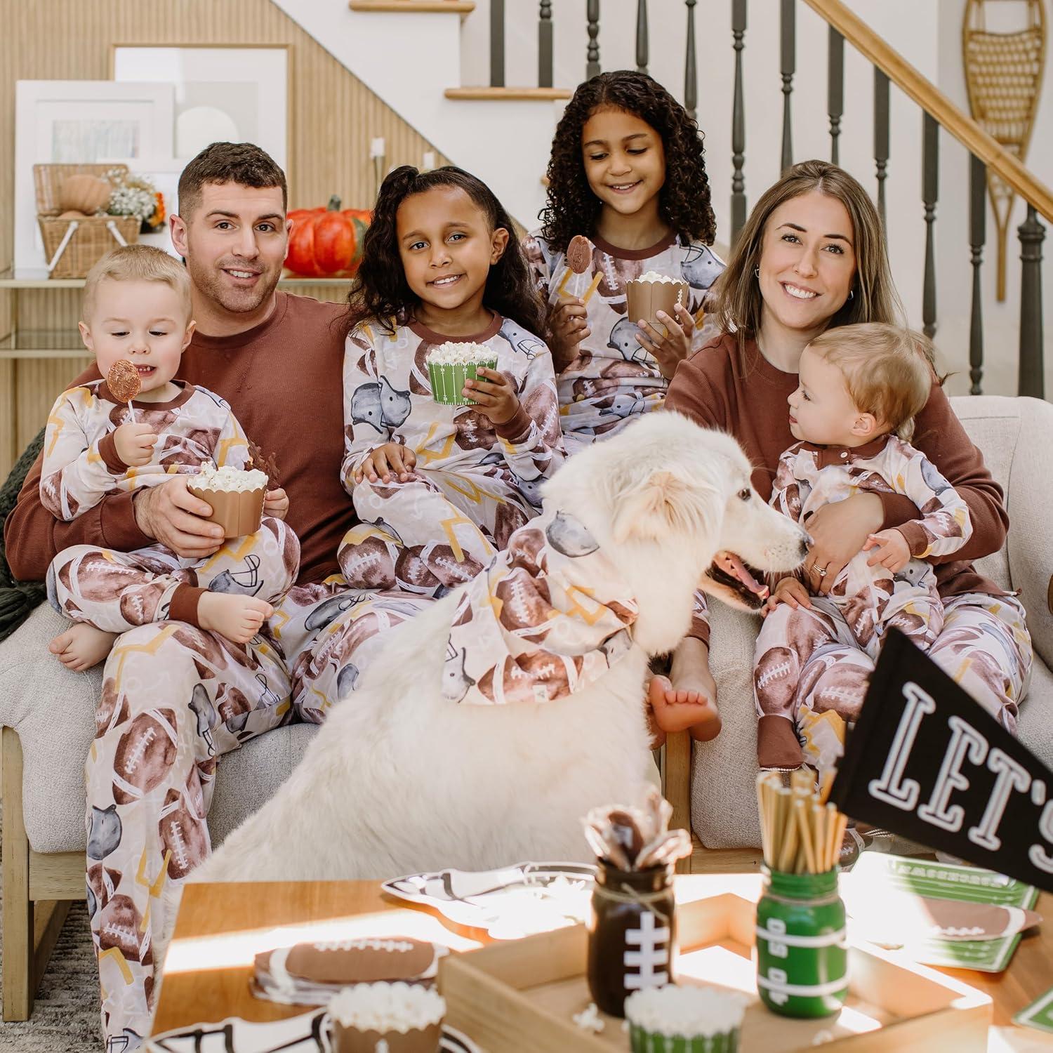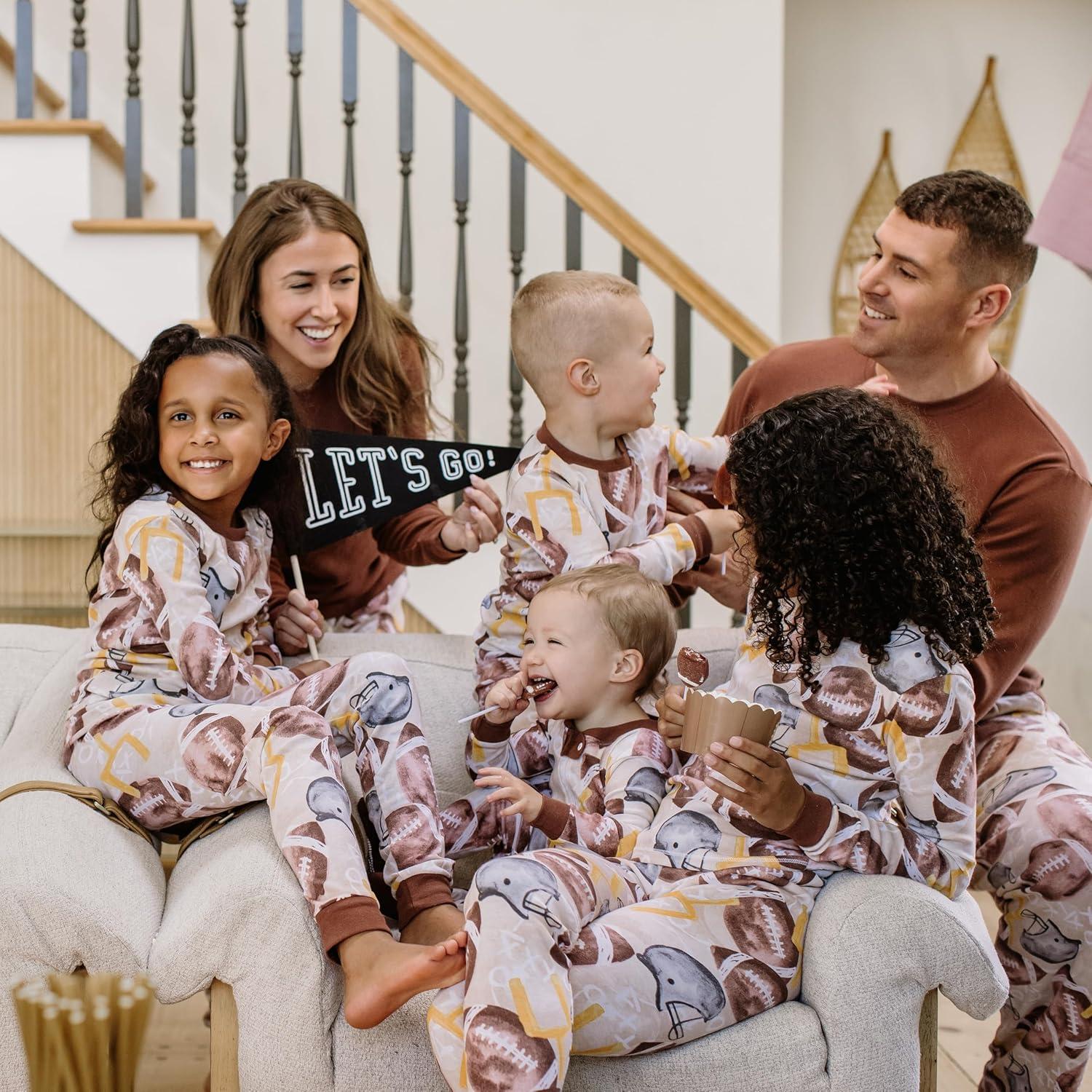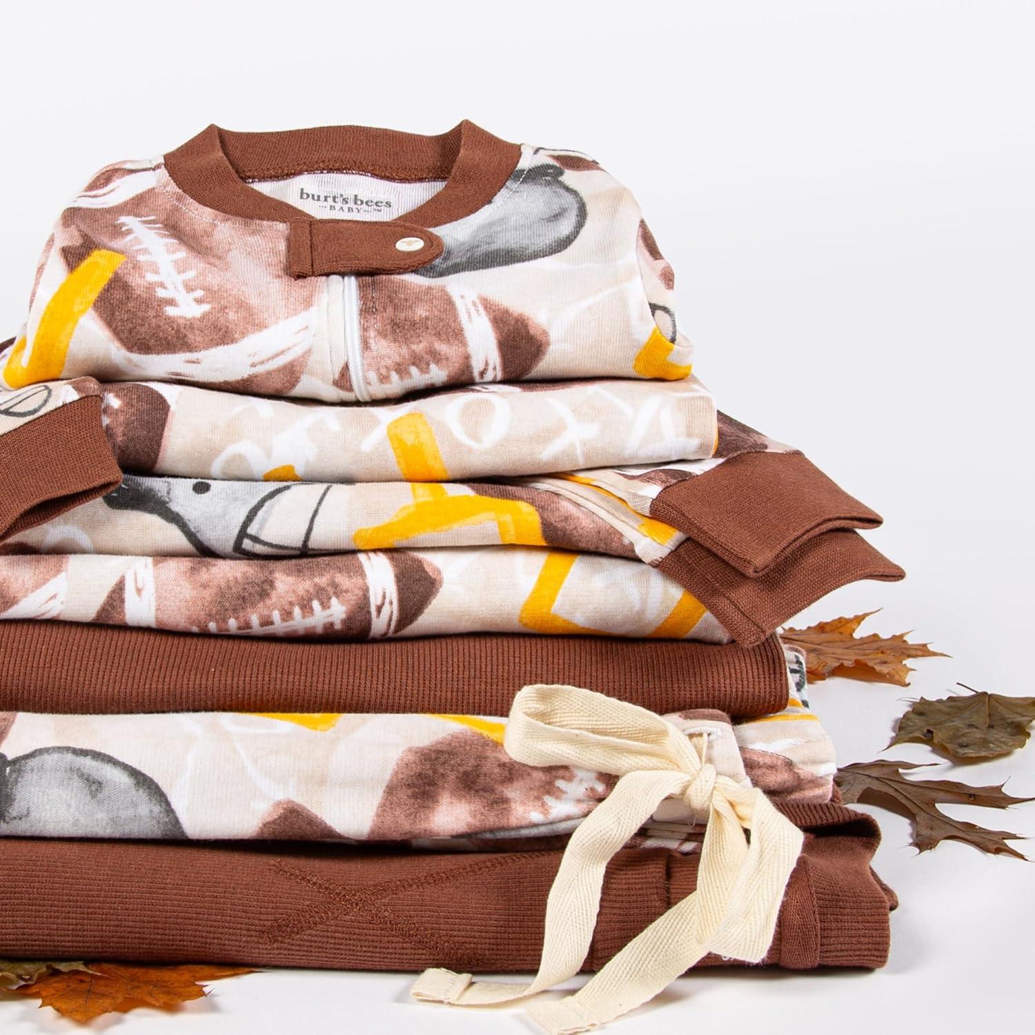 Get ready to celebrate the holiday season in style with Burt’s Bees Baby Family Matching Holiday Pajamas! Made from organic cotton, these festive PJs are perfect for creating unforgettable family memories. Whether you’re looking for matching Christmas pajamas for family photos, a cozy outfit for opening presents, or the perfect gift for friends and family, these holiday PJs are designed to bring everyone together in comfort and cheer. Ultimate Comfort & Quality: Our matching family Christmas pajamas are crafted from organic cotton, ensuring they’re soft, breathable, and gentle on sensitive skin. Ideal for the whole family, these PJs offer a snug fit with just the right amount of stretch, making them perfect for lounging, playing, and sleeping. Festive Fun for All Ages: Our seasonal family pajamas are available in a variety of holiday-themed prints, including football, pumpkins, reindeer, snowflakes, and Christmas trees, these PJs make every moment feel festive. Choose from sizes for infants, toddlers, big kids, and adults, with special dog bandanas so your furry friends can join in the fun! Designed for Durability: The high-quality organic cotton fabric maintains its softness and vibrant color, wash after wash. The easy-care PJs are machine washable. Perfect for Every Occasion: Whether you’re snuggling up for a holiday movie marathon, taking family photos, or hosting a holiday brunch, these matching holiday pajamas are sure to make your celebration even more special. Available in 2pc sets for baby boys, girls, toddlers, men, and women, there’s something for everyone in our family collection. Create Lasting Memories: Make this holiday season unforgettable with matching family Christmas pajamas, family football matching pajamas and family Halloween matching pajamas. Our cozy, festive designs are perfect for creating cherished memories with your loved ones—because the best part of the holidays is being together. Manufactured according to GOTS standards.