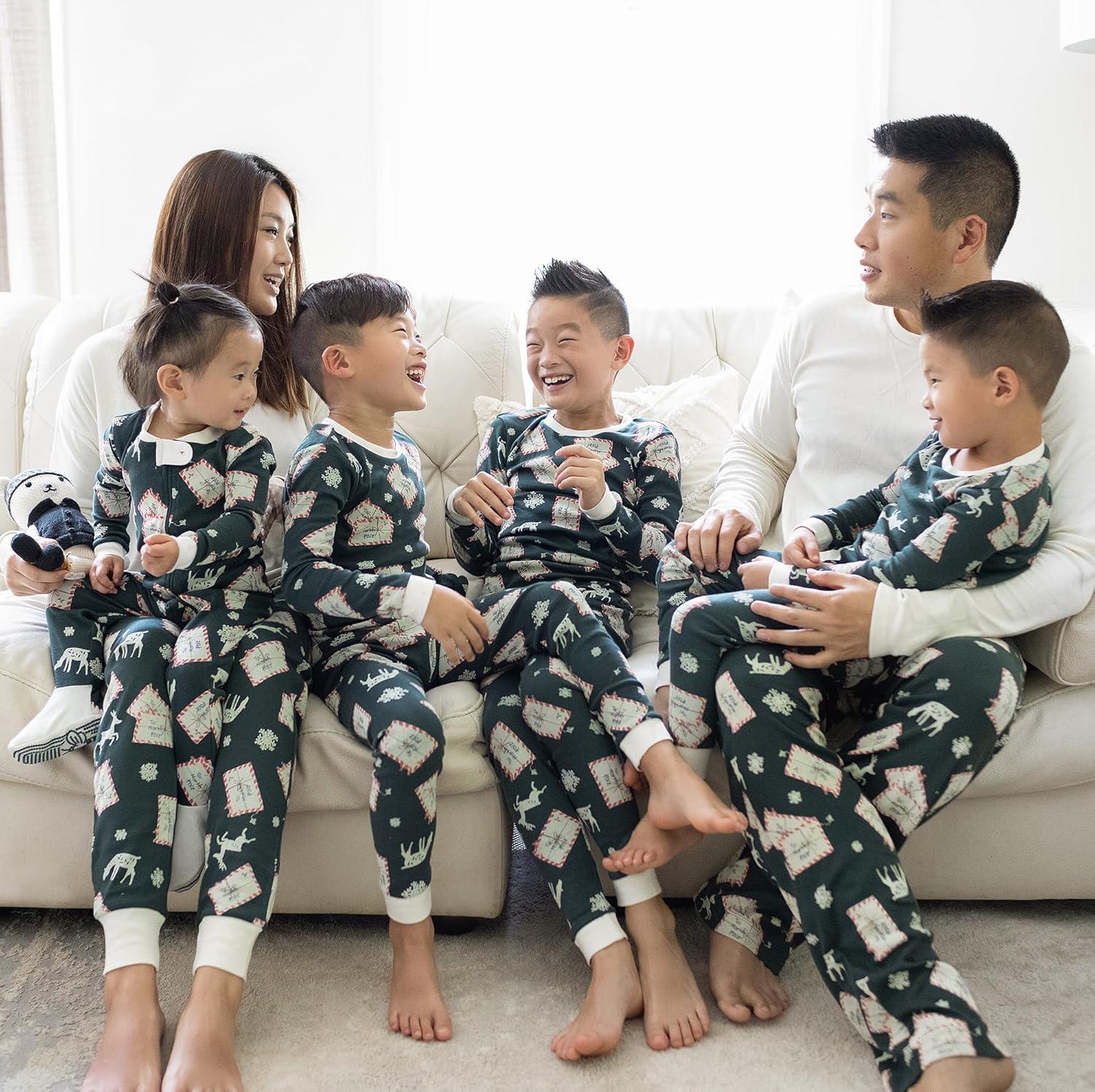 Get ready to celebrate the holiday season in style with Burt’s Bees Baby Family Matching Holiday Pajamas! Made from organic cotton, these festive PJs are perfect for creating unforgettable family memories. Whether you’re looking for matching Christmas pajamas for family photos, a cozy outfit for opening presents, or the perfect gift for friends and family, these holiday PJs are designed to bring everyone together in comfort and cheer. Ultimate Comfort & Quality: Our matching family Christmas pajamas are crafted from organic cotton, ensuring they’re soft, breathable, and gentle on sensitive skin. Ideal for the whole family, these PJs offer a snug fit with just the right amount of stretch, making them perfect for lounging, playing, and sleeping. Festive Fun for All Ages: Our seasonal family pajamas are available in a variety of holiday-themed prints, including football, pumpkins, reindeer, snowflakes, and Christmas trees, these PJs make every moment feel festive. Choose from sizes for infants, toddlers, big kids, and adults, with special dog bandanas so your furry friends can join in the fun! Designed for Durability: The high-quality organic cotton fabric maintains its softness and vibrant color, wash after wash. The easy-care PJs are machine washable. Perfect for Every Occasion: Whether you’re snuggling up for a holiday movie marathon, taking family photos, or hosting a holiday brunch, these matching holiday pajamas are sure to make your celebration even more special. Available in 2pc sets for baby boys, girls, toddlers, men, and women, there’s something for everyone in our family collection. Create Lasting Memories: Make this holiday season unforgettable with matching family Christmas pajamas, family football matching pajamas and family Halloween matching pajamas. Our cozy, festive designs are perfect for creating cherished memories with your loved ones—because the best part of the holidays is being together. Manufactured according to GOTS standards.