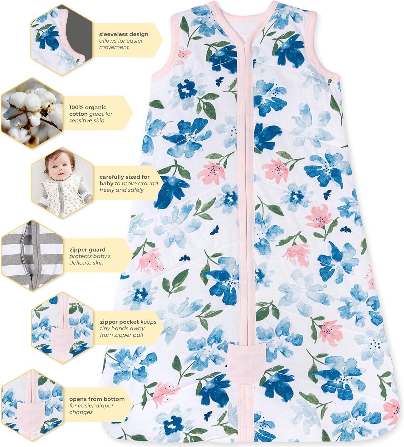 Burt’s Bees Baby Unisex Beekeeper Wearable Blanket, Organic Cotton – Light Weight or Medium Weight – Newborn Essentials(Quilted Botanical Gardens)